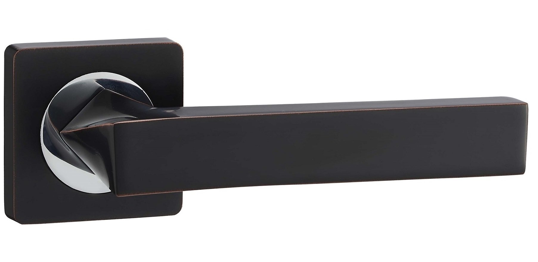 Дверная ручка на квадратной розетке производителя "Vantage". Использование недорогого сплава "ZAMAK" c гальваническим покрытием позволило создать недорогую и качественную продукцию. Конечно такая ручка не сравнится с латунными итальянскими ручками, но все таки будет служить прилично, особенно при правильной эксплуатации.