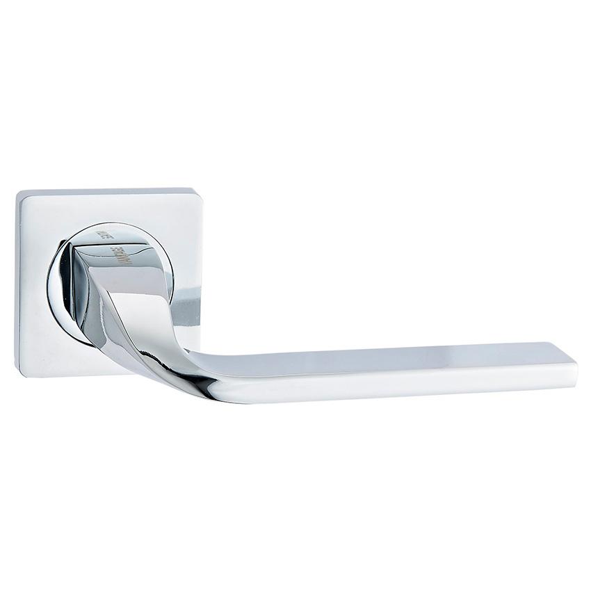 Дверная ручка на квадратной розетке производителя "Vantage". Использование недорогого сплава "ZAMAK" c гальваническим покрытием позволило создать недорогую и качественную продукцию. Конечно такая ручка не сравнится с латунными итальянскими ручками, но все таки будет служить прилично, особенно при правильной эксплуатации.