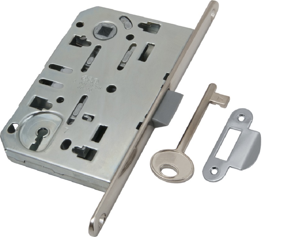 Межкомнатный замок AGB (АГБ) под ключ буратино MEDIANA EVOLUTION B01101.50.34.567 с отв. планкой (Матовый хром)