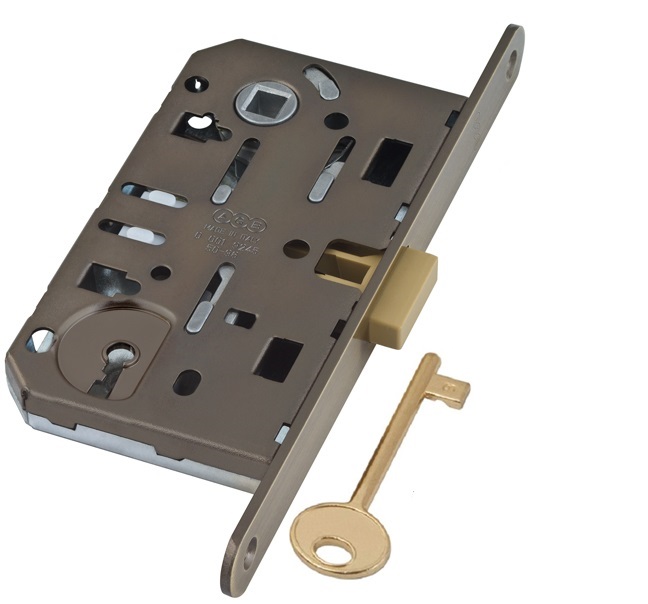 Межкомнатный замок AGB (АГБ) под ключ буратино MEDIANA EVOLUTION B01101.50.12.567 с отв. планкой (Античная бронза)