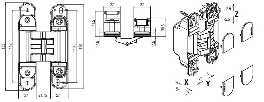 Скрытая петля Koblenz Kombi 30 K 1000 CS DXCX S30 (Матовый хром)
