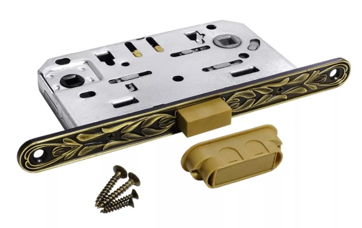 Замок межкомнатный магнитный Morelli M1885-U IB с фигурной планкой под цилиндр