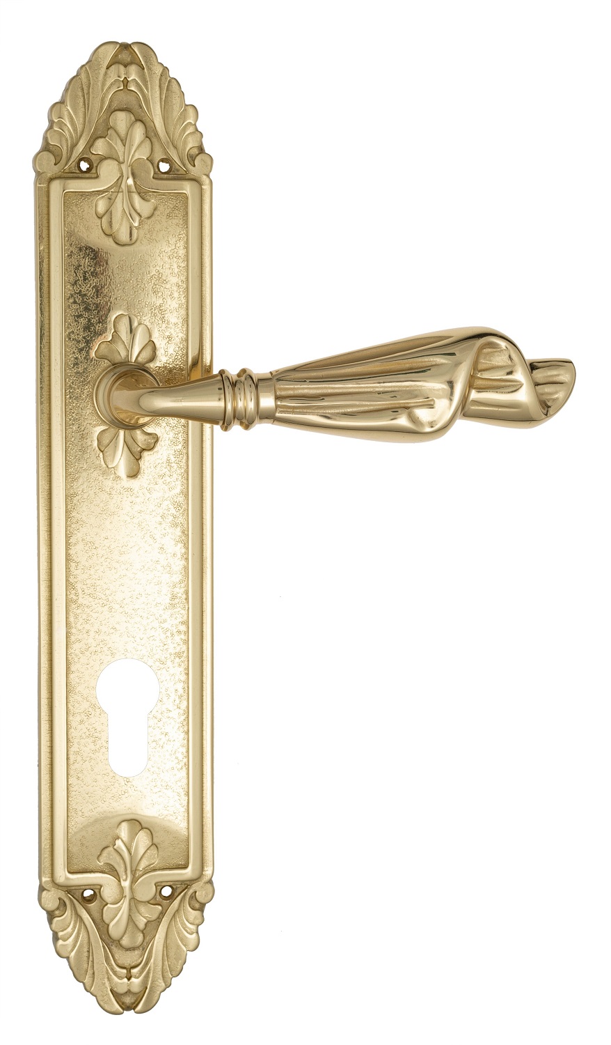 Дверная ручка на планке Venezia FLORENCE PL90 OL CYL (Полированная латунь)