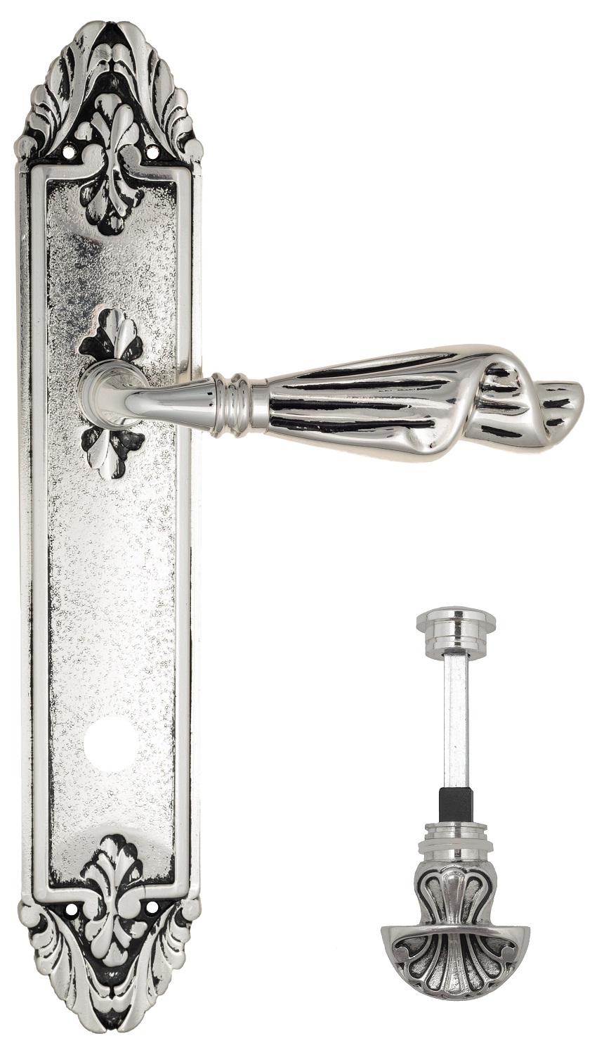 Дверная ручка на планке Venezia LUCRECIA PL02 DAS WC-2 (Античное серебро)