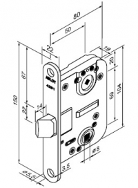 Замок может использоваться с нажимными ручками и туалетной поворотной кнопкой.
