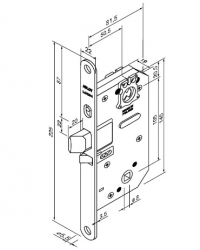 Корпус замка с автоматически блокирующимся косым ригелем. Задание режима автоматического запирания задается с помощью специальной кнопки, расположенной на передней планке. Положение кнопки: ВЕРХНЕЕ – автоматическое запирание при закрытии двери. Замок может быть открыт только ключом или поворотной кнопкой. НИЖНЕЕ – замок работает в режиме защелки и может быть открыт ручками.