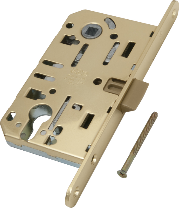 Замок межкомнатный под цилиндр в цвете латунь с металическим язычком серии Centro. Защелка разработанна инженерами компании AGB и объединяет в себе надежность, качество используемых материалов, точность механических соединений и инновации. Все замки серии центро имеют один размер и взаимозаменяемы между собой.