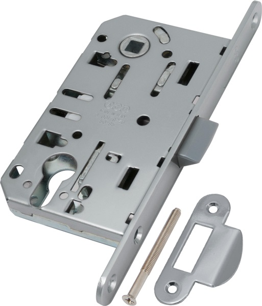 Замок межкомнатный AGB (АГБ) CENTRO B01025.50.34 под цилиндр ригель+защёлка (Матовый хром)