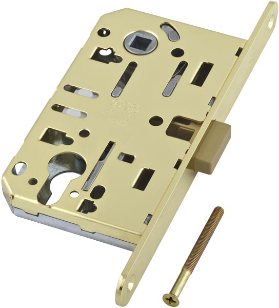Замок межкомнатный AGB (АГБ) CENTRO B01025.50.03 под цилиндр ригель+защёлка (Латунь)