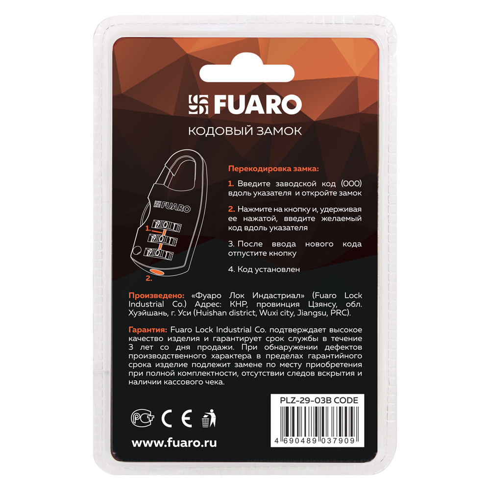 Замок кодовый Fuaro (Фуаро) PLZ-29-03B CODE БЛИСТЕР