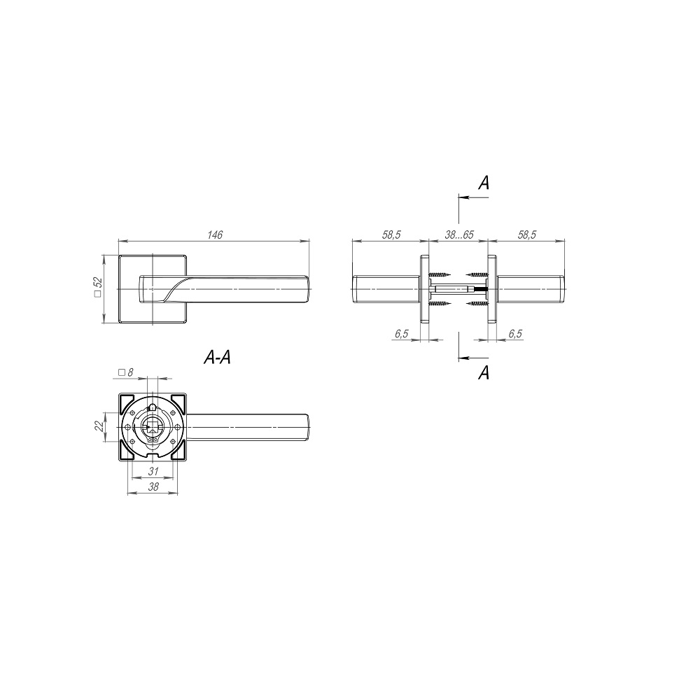 В комплект входят: стяжные винты, соединительный квадрат 8x100 мм, саморезы, фиксирующие винты, шестигранник.