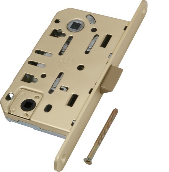 Замок межкомнатный AGB Mediana Evolution (Медиана Эволюшн) под сантехническую завертку. AGB Mediana Evolution с пластиковой реверсивной защелкой, что обеспечивает бесшумное открывание и закрывание двери. Защелка приводится в действие сантехнической заверткой или фалевой ручкой. Рекомендован для установки в межкомнатные двери. Фиксатор и ручки в комплект не входят.