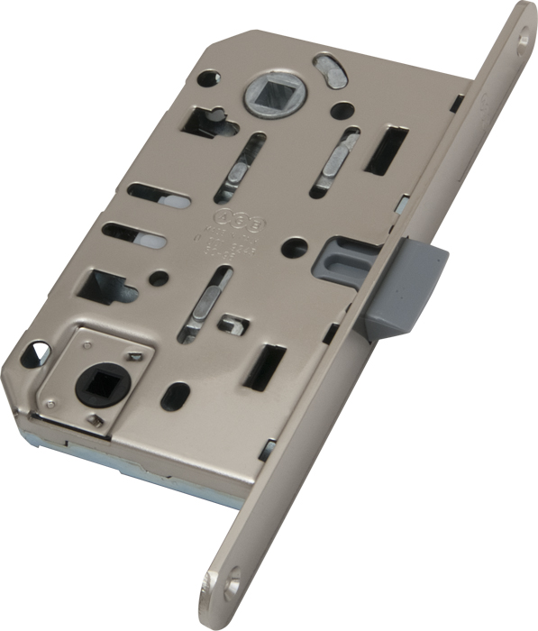 Замок межкомнатный AGB Mediana Evolution (Медиана Эволюшн) под сантехническую завертку. AGB Mediana Evolution с пластиковой реверсивной защелкой, что обеспечивает бесшумное открывание и закрывание двери. Защелка приводится в действие сантехнической заверткой или фалевой ручкой. Рекомендован для установки в межкомнатные двери. Фиксатор и ручки в комплект не входят.