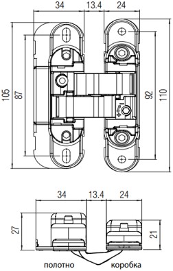 ТОЛЩИНА ДВЕРИ Ширина петли: дверь 34 мм / коробка 24 мм - К - расстояние от края полотна до петли: максимум 5 мм