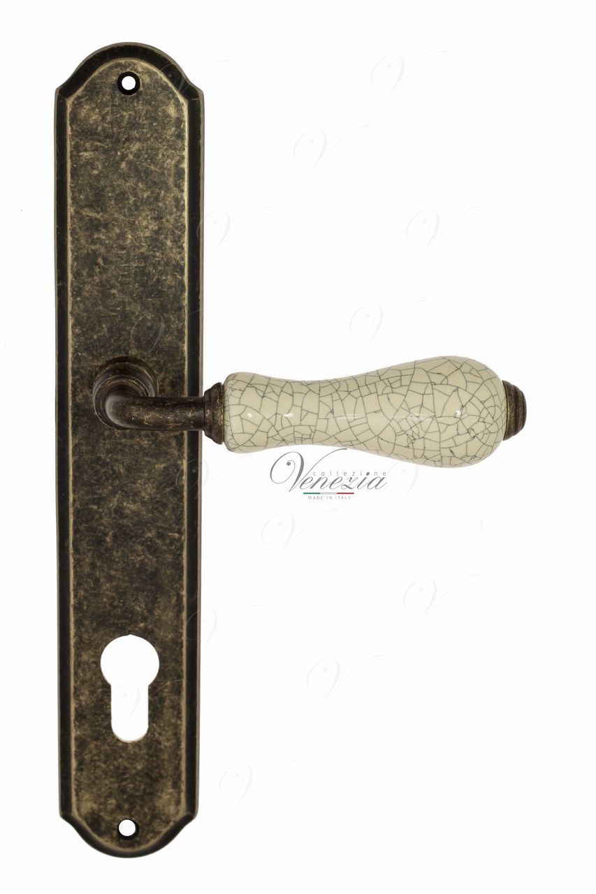 Дверная ручка на планке Venezia COLOSSEO PL90 DAB белая керамика паутинка PASS (Античная бронза)