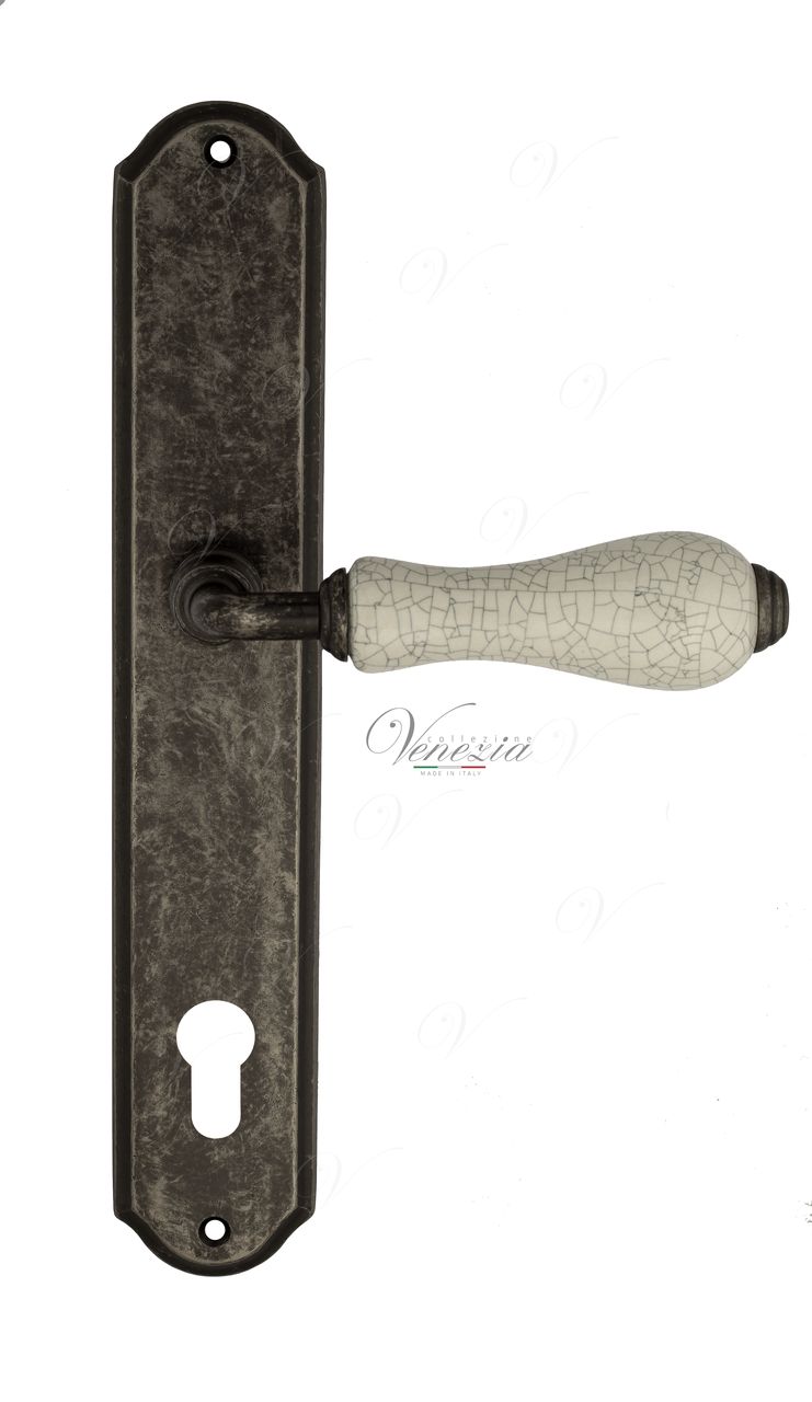 Дверная ручка на планке Venezia COLOSSEO PL90 DAS белая керамика паутинка PASS (Античное серебро)