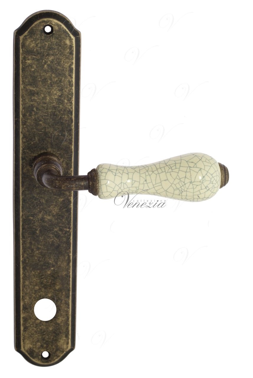 Дверная ручка на планке Venezia COLOSSEO PL90 DAB белая керамика паутинка WC-2 (Античная бронза)