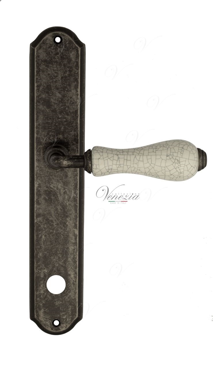 Дверная ручка на планке Venezia COLOSSEO PL90 DAS белая керамика паутинка WC-2 (Античное серебро)