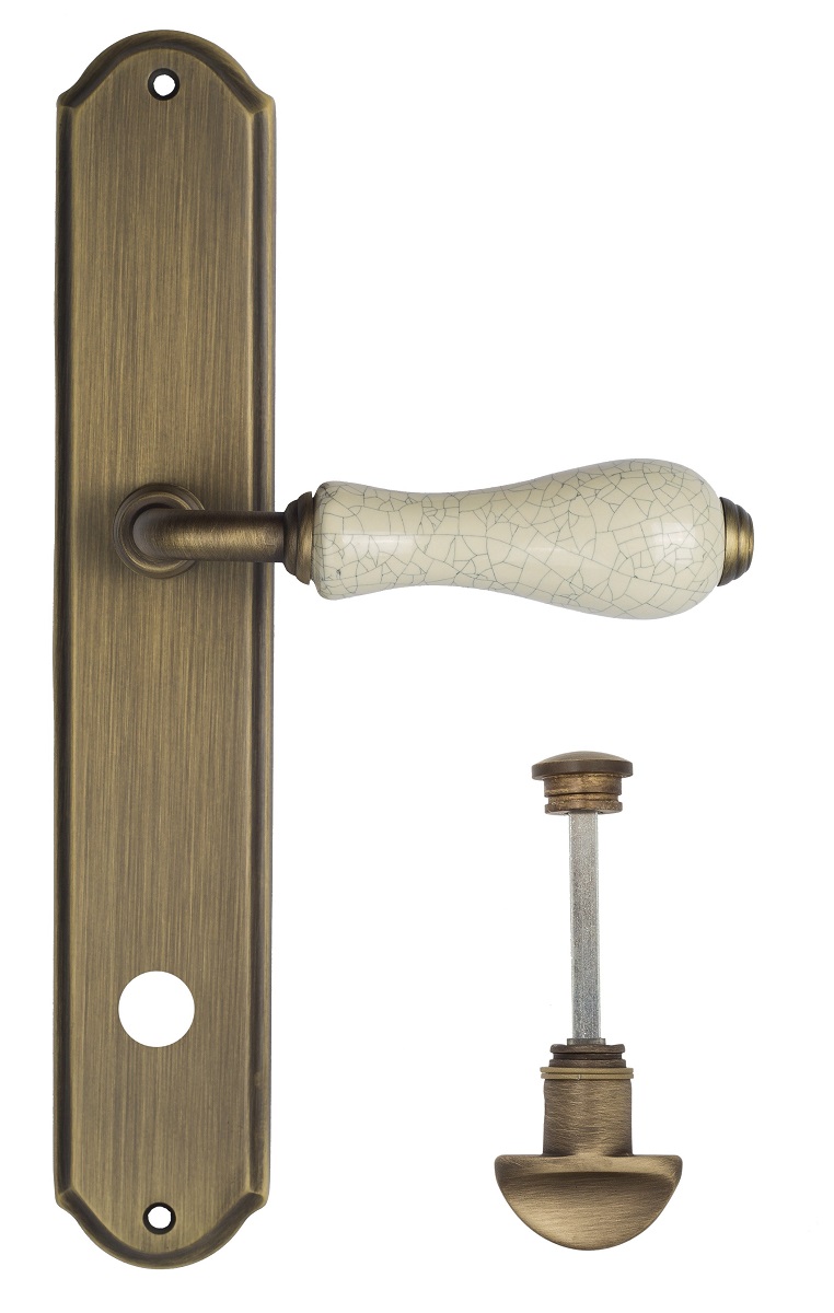 Дверная ручка на планке Venezia COLOSSEO PL90 DAB белая керамика паутинка WC-2 (Античная бронза)