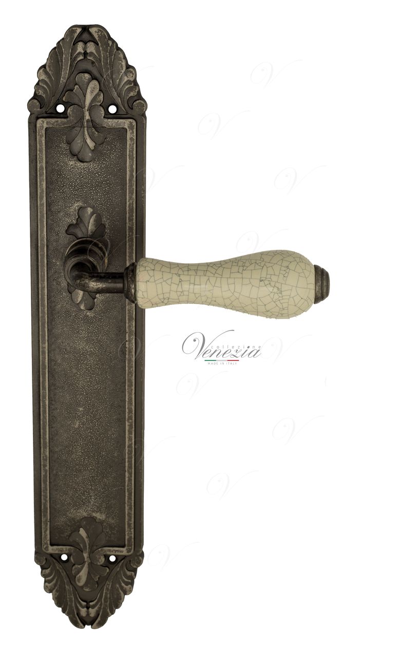 Дверная ручка на планке Venezia COLOSSEO PL90 DAS белая керамика паутинка CYL (Античное серебро)