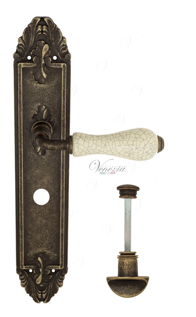 Дверная ручка на планке Venezia COLOSSEO PL90 DAS белая керамика паутинка WC-2 (Античное серебро)