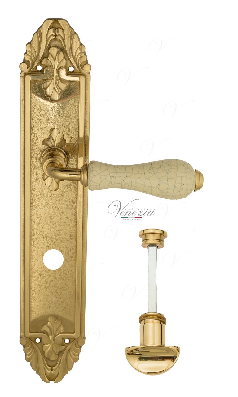 Дверная ручка на планке Venezia COLOSSEO PL90 OL белая керамика паутинка WC-4 (Полированная латунь)