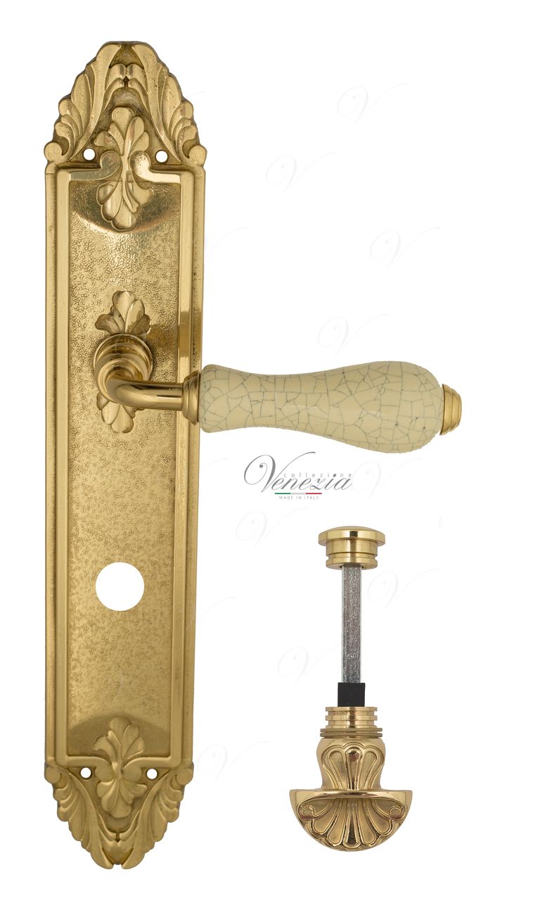 Дверная ручка на планке Venezia COLOSSEO PL90 OL белая керамика паутинка WC-2 (Полированная латунь)